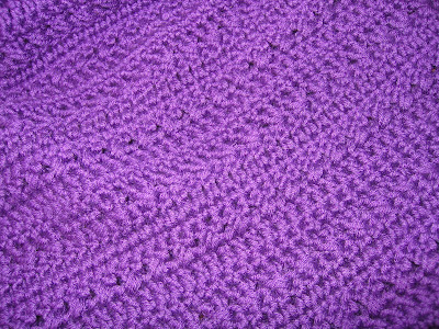 Yarn: Debbie Bliss Cathay, 3x50g balls (exactly!) in purple (col 12012) (the colour in the closeup below is quite true to life). This is a lovely soft yarn, a cotton/silk/ack blend. A bit splitty, but somehow this doesn't bother me too much. Would quite like to knit something very drapey using this.